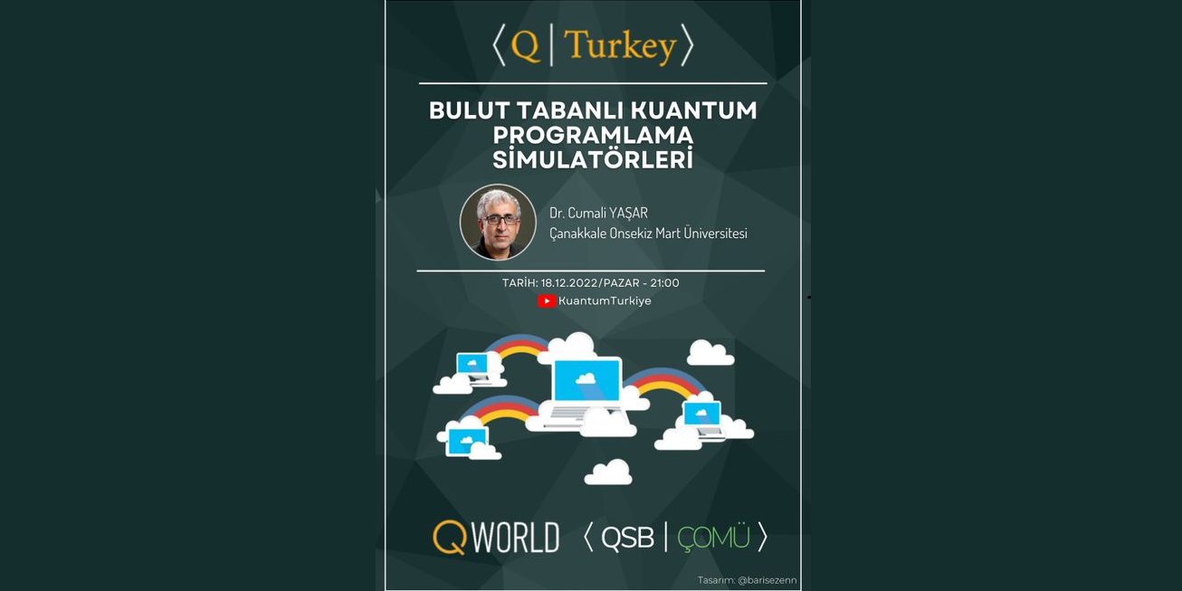 Ara192022QTalks QNickel atölyesi kapsamında gerçekleşecek olan Dr. Cumali Yaşar’ın “Bulut Tabanlı Kuantum Programlma Simulatörleri” konuşmasını Youtube sayfamızdan canlı olarak izleyebilirsiniz. Category: QTalksBy QTurkey Yönetici19 Aralık 2022Leave a comment Share this post Share on WhatsAppShare on WhatsApp Share on LinkedInShare on LinkedIn Pin itShare on Pinterest TweetShare on Twitter Share on FacebookShare on Facebook Post navigationPreviousPrevious post:Gökabad SeminerleriNextNext post:Composing Music Using Quantum AnnealingRelated PostsA Metaphysical Perspective on the Principle of Inertia – Ali Bağcı | Quantum IZTECH Physics Seminar Series22 Kasım 2025Türkiye’de Süperiletken Kuantum Teknolojileri – Ali Bozbey | Quantum Gazi19 Kasım 2025Kuantum Teknolojilerine Giriş: Kuantum Algılama ve İletişim Teknolojileri – Bulat Z. Rami | Quantum GTU6 Kasım 2025Nonlinear Waves and Solitons in Mathematics and Physics – Oktay Pashaev | Quantum IZTECH Physics Seminar Series6 Kasım 2025QMeets x Quantum Boğaziçi | 5-8 Kasım 202524 Ekim 2025Introduction to ‘Loop Quantum Gravity’ – Bekir Baytaş | Quantum IZTECH24 Ekim 2025