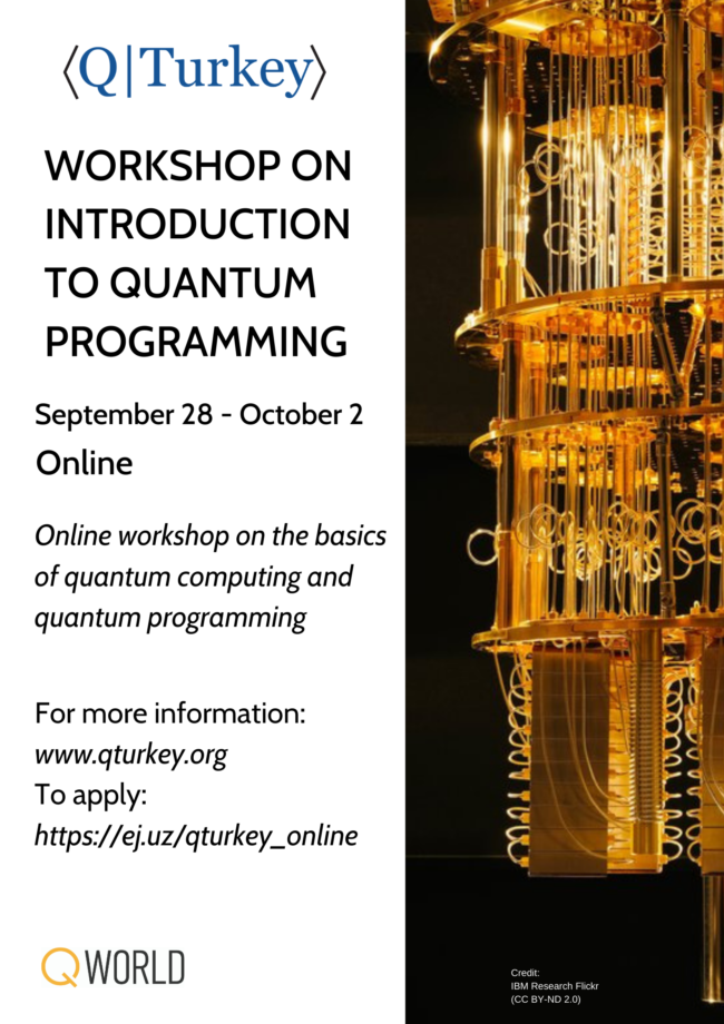 16-21 Kasım, 2020 Kuantum hesaplama ve kuantum programlamanın temelleri ile ilgili 6 günlük bir eğitim.