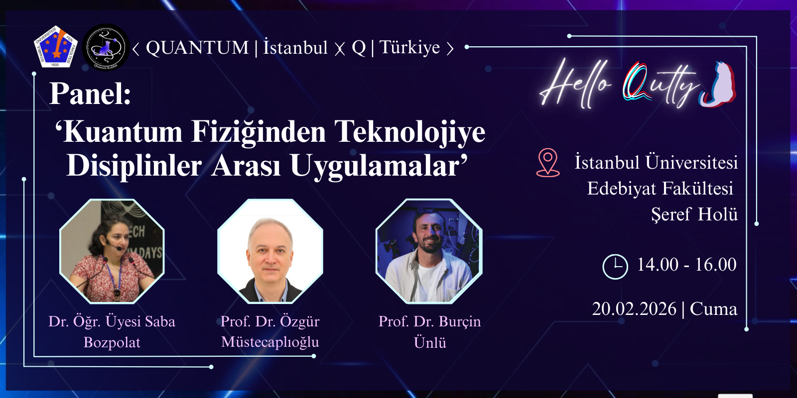 QTürkiye öğrenci kolu Quantum İstanbul tarafından 20 Şubat Cuma günü saat 14:00-16:00’da yüz yüze olarak “Kuantum Fiziğinden Teknolojiye Disiplinler Arası Uygulamalar” başlıklı bir panel gerçekleştirilecektir. Panelde Saba Bozpolat (Marmara Üniversitesi),Özgür Müstecaplıoğlu (Koç Üniversitesi) ve Burçin Ünlü (Özyeğin Üniversitesi) hocalarımız yer alacaktır.