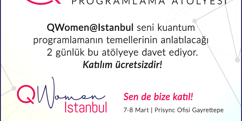 Mar72020QWomenWorkshop QWomen@İstanbul seni kuantum programlamanın temellerinin anlatılacağı 2 günlük bu atölyeye davet ediyor! Categories: QWomen, WorkshopBy QTurkey Yönetici7 Mart 2020Leave a commentTags: kuantumkuantum programlamakuantum türkiyeqbronzeqturkeyqwomen Share this post Share on WhatsAppShare on WhatsApp Share on LinkedInShare on LinkedIn Pin itShare on Pinterest TweetShare on Twitter Share on FacebookShare on Facebook Post navigationPreviousPrevious post:QTalks 2020NextNext post:KTHACK’20 Kuantum Teknolojileri HackathonuRelated PostsScientific Programming 25-26 Ekim – Quantum ODTÜ24 Ekim 2025QCodeLab (Giriş Seviye Python Eğitimi) – 20 Ekim | Quantum Çankaya17 Ekim 2025QBronze (Kuantum Programlamaya Giriş Eğitimi) 22-28 Eylül 2025 | Quantum Marmara1 Eylül 2025QSummer 20253 Haziran 2025Qiskit Metal ile Süperiletken Kübit Tasarımı Atölyesi | Hacettepe Üniversitesi – 15-16 Mayıs – Yüz Yüze10 Mayıs 2025QBronze (Kuantum Programlamaya Giriş) Atölyesi – Hibrit | Quantum Sakarya23 Nisan 2025