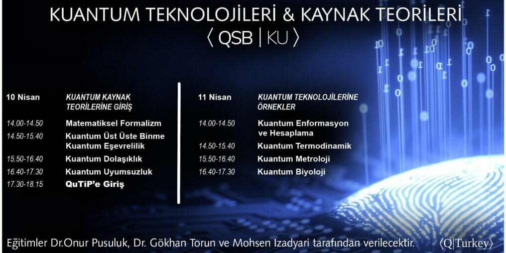 Nis102021QTalks 10-11 Nisan, 2021 Category: QTalksBy QTurkey Yönetici10 Nisan 2021Leave a comment Share this post Share on WhatsAppShare on WhatsApp Share on LinkedInShare on LinkedIn Pin itShare on Pinterest TweetShare on Twitter Share on FacebookShare on Facebook Post navigationPreviousPrevious post:QTalks On Quantum TechnologiesNextNext post:QTurkey ile Kuantum Programlamaya Giriş AtölyesiRelated PostsA Metaphysical Perspective on the Principle of Inertia – Ali Bağcı | Quantum IZTECH Physics Seminar Series22 Kasım 2025Türkiye’de Süperiletken Kuantum Teknolojileri – Ali Bozbey | Quantum Gazi19 Kasım 2025Kuantum Teknolojilerine Giriş: Kuantum Algılama ve İletişim Teknolojileri – Bulat Z. Rami | Quantum GTU6 Kasım 2025Nonlinear Waves and Solitons in Mathematics and Physics – Oktay Pashaev | Quantum IZTECH Physics Seminar Series6 Kasım 2025QMeets x Quantum Boğaziçi | 5-8 Kasım 202524 Ekim 2025Introduction to ‘Loop Quantum Gravity’ – Bekir Baytaş | Quantum IZTECH24 Ekim 2025